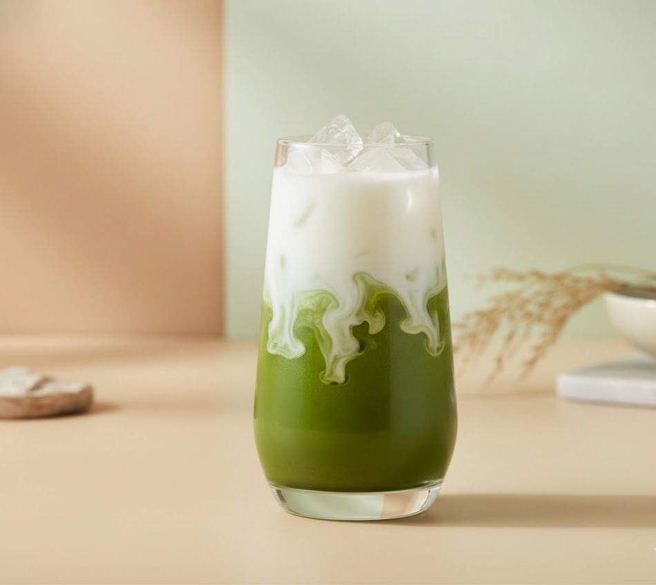 Trà matcha hòa quyện với nước cốt dừa béo ngậy. Vị mát và thơm đặc biệt